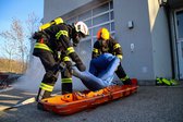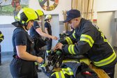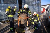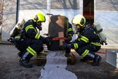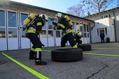 Zum Auftakt absolvierten die Teilnehmer eine Theorieprüfung, bei der sowohl Fachfragen als auch eine Rechenaufgabe zu bewältigen waren. Im Anschluss rüsteten sich die Trupps mit schwerem Atemschutz aus und traten zur praktischen Bewerbsstrecke an. Dort mussten mehrere Stationen gemeistert werden. Wie zum Beispiel; die Rettung einer Person aus einem verrauchten Gebäude, das Abdichten eines beschädigten Fasses sowie der sichere Aufstieg über eine Leiter in das erste Obergeschoss.