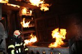 Eine enge und gut funktionierende Zusammenarbeit aller drei Atemschutzträger ist besonders wichtig, da die Flammen buchstäblich von allen Seiten auf sie zukommen. Aber nicht nur das Feuer, sondern auch andere Gefahren lauern in unmittelbarer Nähe. Da ist zum Beispiel eine Gasleitung, die umgehend abgesperrt werden muss und ein Elektroverteiler, der bereits in Flammen steht. Gleichzeitig muss der Trupp auch noch den, für ihn lebenswichtigen, Rückzugsweg im Auge behalten, da das Feuer auch diesen immer wieder zu erobern versucht. Und ganz nebenbei sollte noch die Menge der zur verfügbaren Atemluft, die je nach Anstrengung zwischen zwanzig und fünfundzwanzig Minuten ausreicht, kontrolliert werden. Zusätzlich zu den geistigen und körperlichen Anstrengungen kommt dann auch noch die extrem hohe Umgebungstemperatur von mehreren Hundert Grad Celsius.