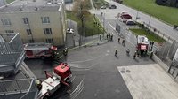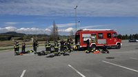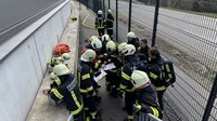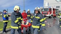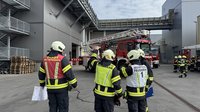 Die vermissten sowie teils schwer verletzten Personen konnten von den Atemschutztrupps rasch aufgefunden und dem Roten Kreuz zur Erstversorgung übergeben werden. Zusätzlich wurde angenommen, dass sich eine Atemschutzträgerin während der Löscharbeiten verletzte. Die Einsatzkräfte hatten die Aufgabe, die verletzte Kameradin mithilfe der Teleskopmastbühne aus einem der oberen Stockwerke des Firmengebäudes zu retten.