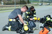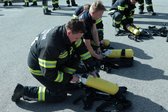 Diese Information führte zur umgehenden Intensivierung der Suchmaßnahmen sowie zu mehreren Innenangriffen unter schwerem Atemschutz. Insgesamt standen dafür 12 Atemschutztrupps (inklusive Reserve) im Übungseinsatz, weshalb auch ein eigener Atemschutzsammelplatz eingerichtet wurde.