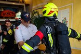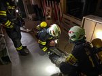 Zum Auftakt absolvierten die Teilnehmer eine Theorieprüfung. Anschließend folgte das korrekte Aufnehmen des Atemschutzgerätes. Bei der praktischen Einsatzübung musste der Trupp verschiedene Aufgaben bewältigen. Dazu zählten unter anderem das Ablesen und Durchgeben von zwei Manometerwerten, das Auffinden eines erhitzten Kanisters mithilfe der Wärmebildkamera sowie das Erkennen und Melden von neun Behältern, unter denen sich auch solche mit gefährlichen Stoffen befanden.