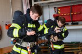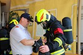 Nachdem diese Aufgaben erfolgreich abgeschlossen waren, wurde die Pflege und Wartung des Atemschutzgerätes durchgeführt. Dazu gehörten unter anderem der Flaschenwechsel sowie die Hochdruckdichtprüfung. Zum Abschluss mussten noch eine Rechenaufgabe sowie mündliche Fragen beantwortet werden.