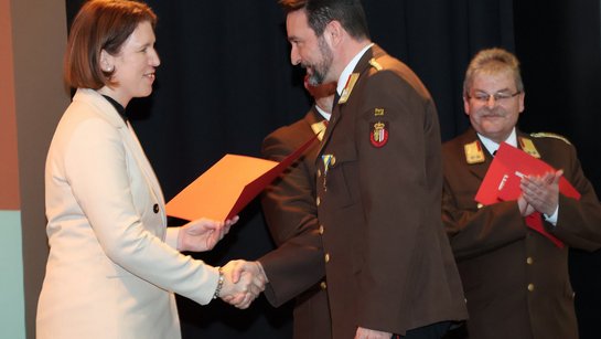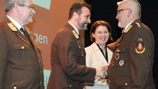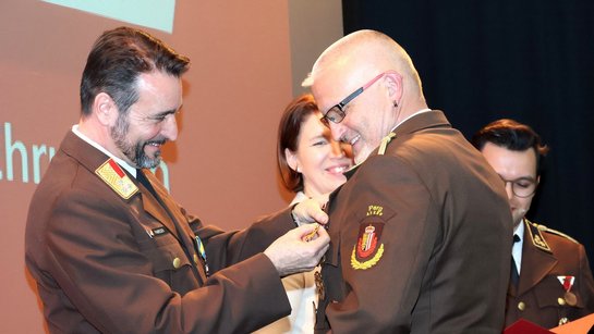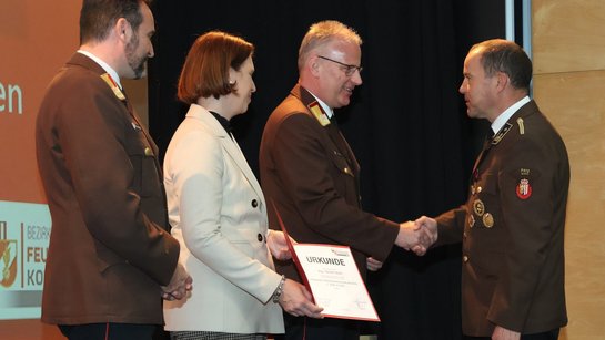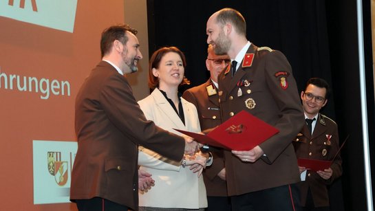 Des Weiteren wurde die gute Zusammenarbeit mit der regionalen Wirtschaft hervorgehoben und drei Unternehmen für ihren Einsatz zum Wohle der Feuerwehr mit der Großen Florian-Ehrenmedaille des Oö. Landes-Feuerwehrverbandes in Bronze ausgezeichnet: Autohaus Gmeiner, Baufirma Hentschläger und Machlanddamm Betriebsgesellschaft.
