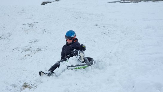 Bestens ausgerüstet mit Schibekleidung inkl. Helm und Brille konnte der Spaß auf der ca. 500 m langen Piste beginnen. Abfahrt für Abfahrt war für die Kinder ein Erlebnis. Ein eingerichteter Shuttledienst brachte die Kinder wieder retour zum Ausgangspunkt.