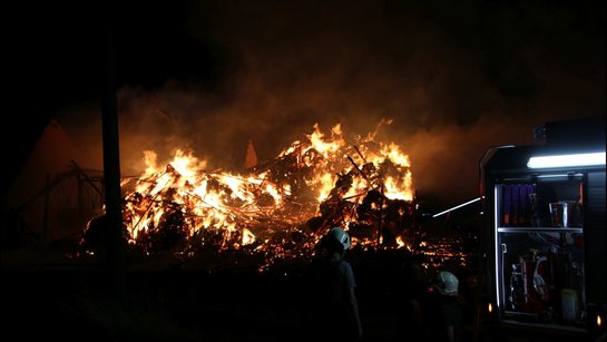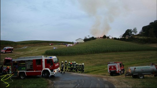 Unterstützung, indem sie mit Vakuumfässern Löschwasser zur Einsatzstelle brachten. Anfangs