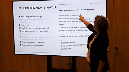 PR-Expertin und Journalistin Mag. Susanne Sametinger vermittelte viele interessante Informationen, sowie Tipps und Tricks, die einen guten Bericht ausmachen. Ganz unter dem Motto von Victor Vogelsang, HAW für Öffentlichkeitsarbeit: "Verkauft die Leistung und nicht die Dramatik im Einsatz", erarbeiteten die Teilnehmer die wichtigsten Punkte einer Presseaussendung. Als weiteres Thema präsentierte Mag. Philipp Fürst von der Marketing-Abteilung des Landesfeuerwehrkommandos die neue innovative Homepage des Landesverbandes sowie die vielen Vorteile der Feuerwehren die ab Frühjahr 2024 die Plattform als eigene Homepage nutzen können.